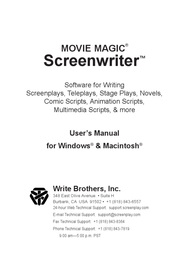 Download Movie Magic Screenwriter 6 For Windows Write Brothers Support